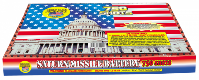 750 shots of whistling rockets zoom into the sky, one right after another. Great long lasting item.