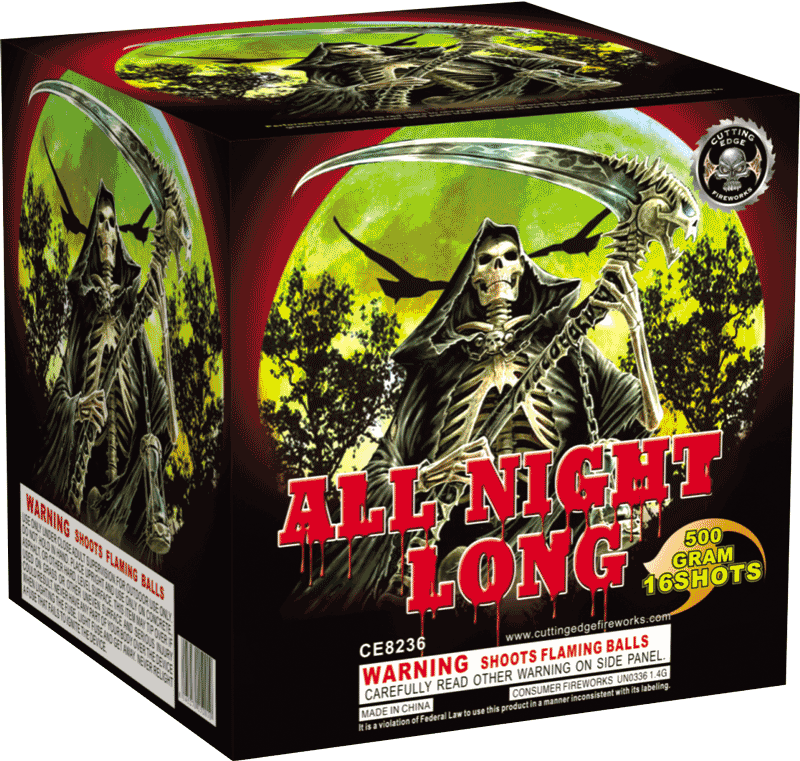 16 Shots of huge break of red and green and gold with a variety of effects that lasts longer than you yould think