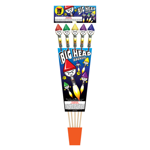 Big Head Rockets shoot headlong into the sky reaching heady heights, with huge head-strong bursts.  Head-spinning stuff!!  5 pcs/pkg