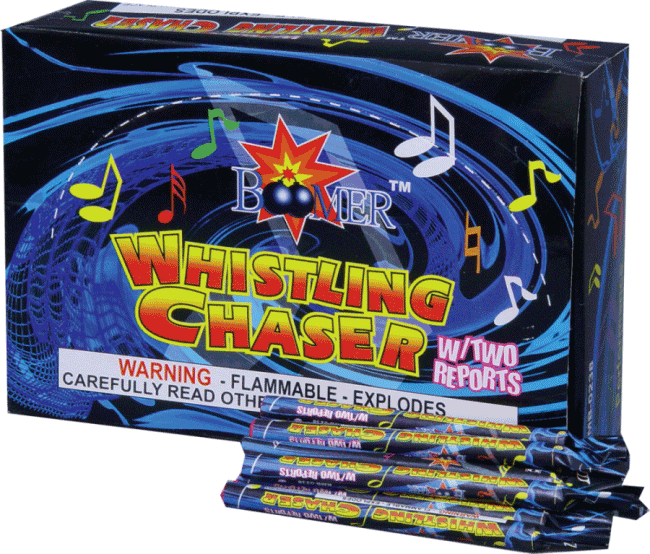 This fun firework pushes itself along the ground and reports at the end. Like bottle rockets without the stick, they take off all-over the place, whistle and then bang really loud!!! 8 pcs/pkg